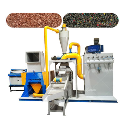 As matérias-primas de fios de cabo podem ser colocadas na máquina tudo-em-um diretamente, depois de esmagar, ele usará o sistema de separação de ar para fazer o cobre e plástico suspenso na tela.Em seguida, pode separar o cobre do plástico pelo método de ponderação e a força de atrito que produzido pela superfície da malha.